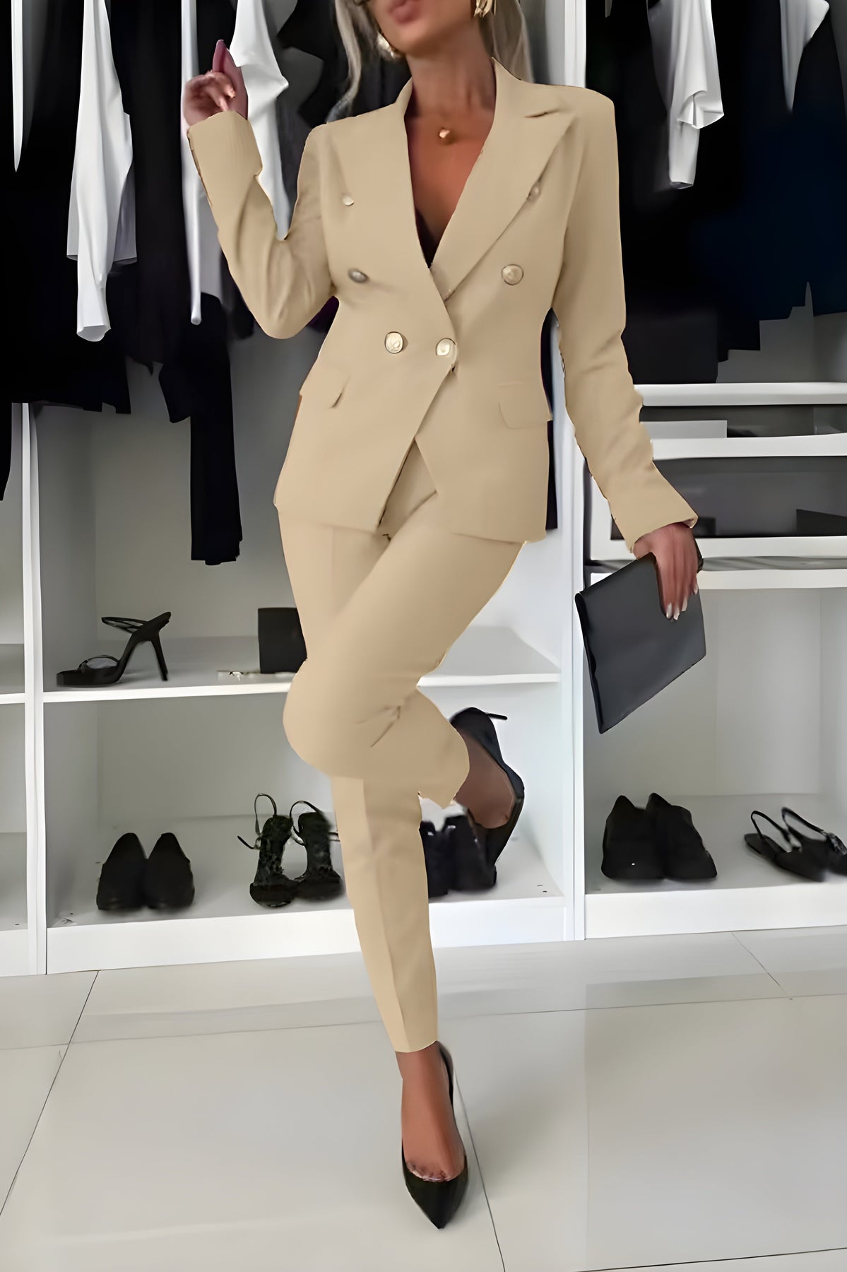 👑 Hienostuneet kullanväriset napit – hienovarainen luksus, joka nostaa lookin uudelle tasolle.