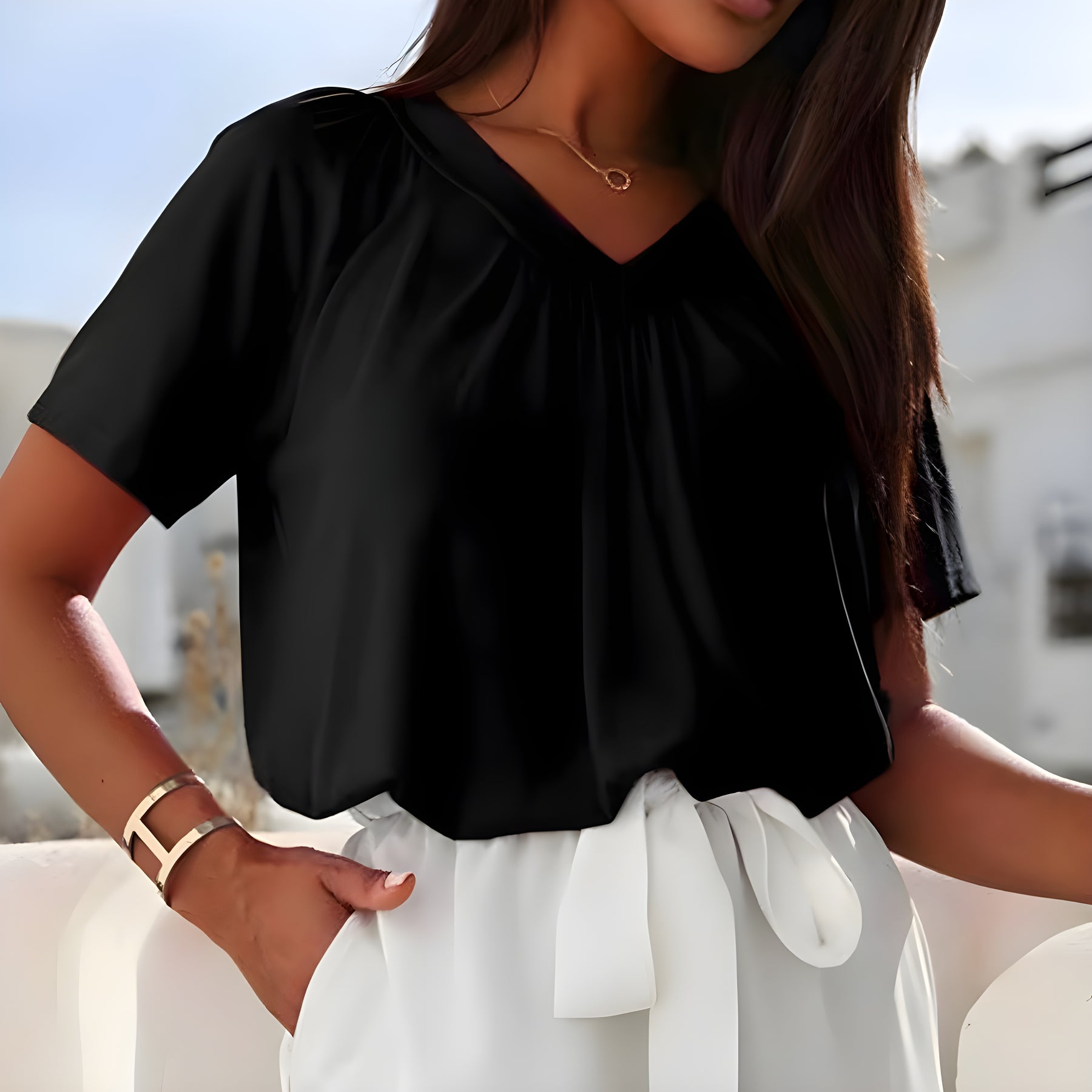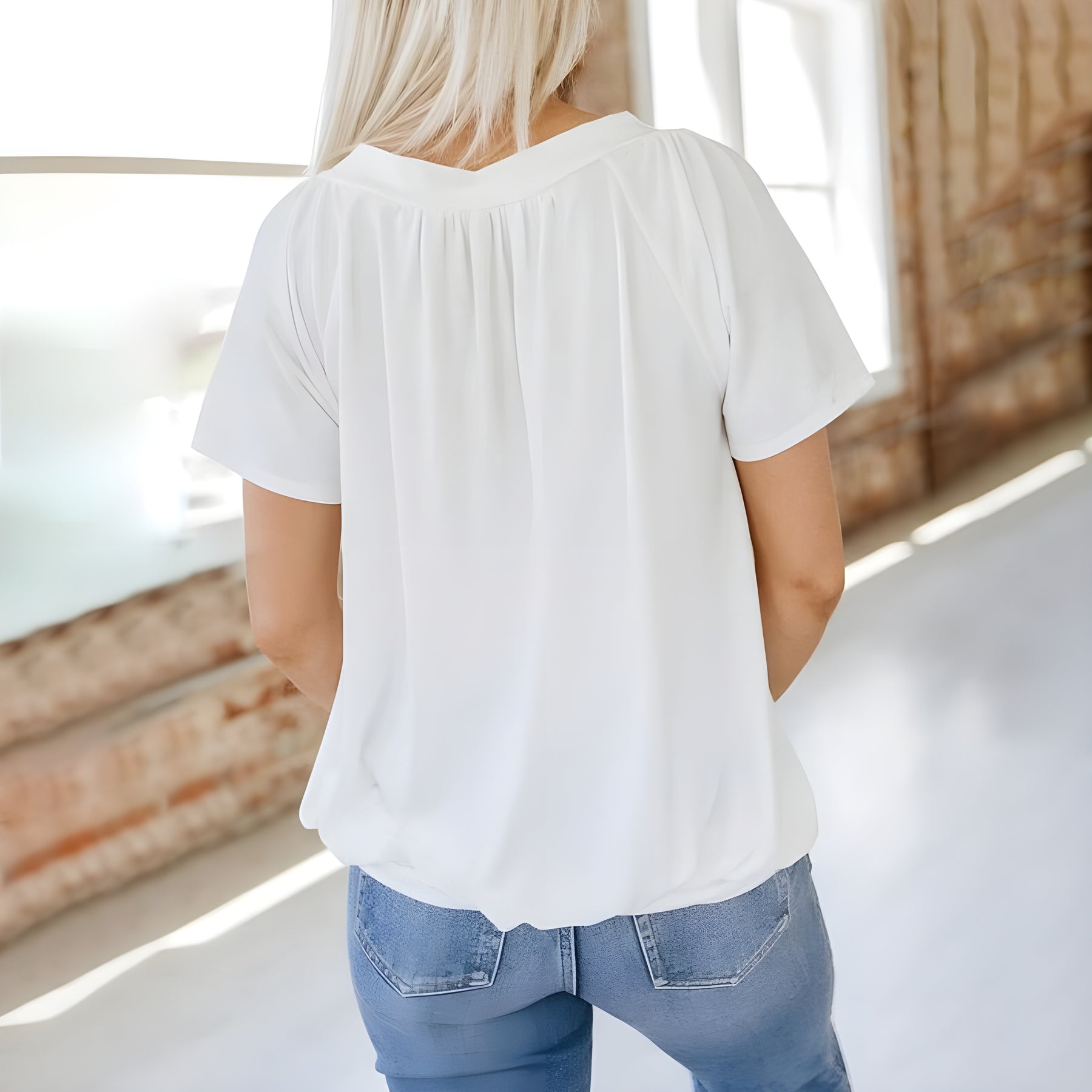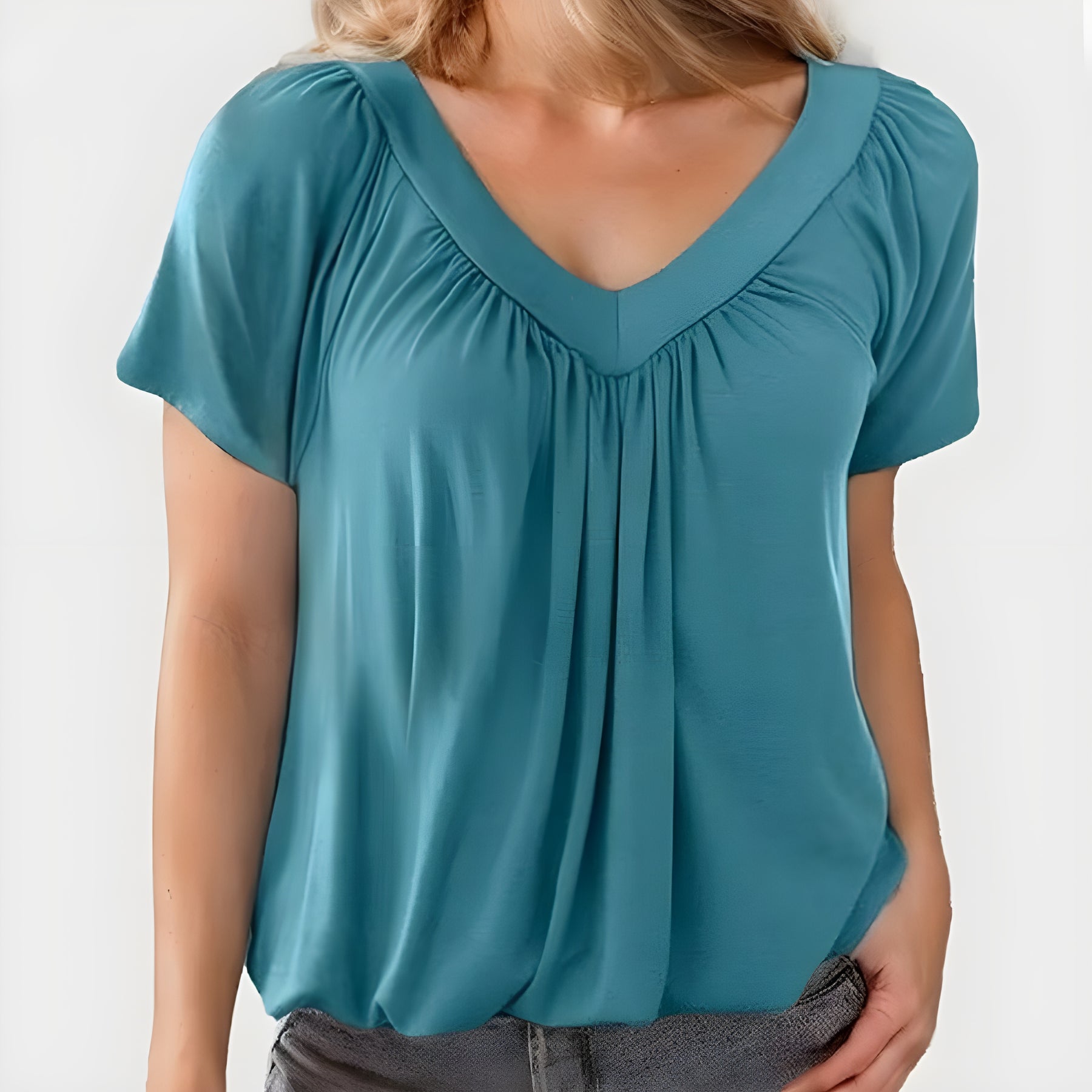 Kaste™ | Naisten rento pliseerattu V-pääntie lyhythihainen paita