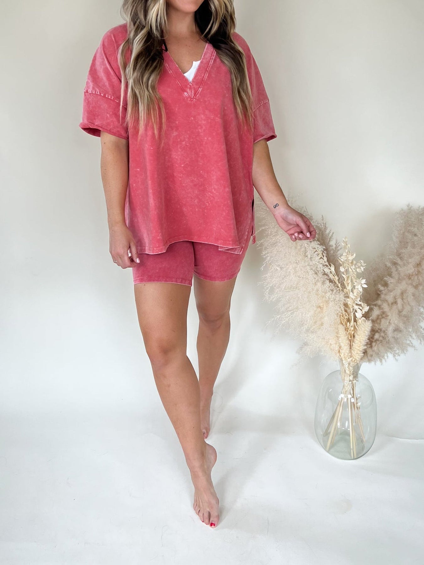Sunny™ | Kesäinen Kaksiosainen Setti tarjoaa vaivattoman ja trendikkään kesälookin. Oversized Washed Setillä luot rennon ja viileän ilmeen mukavan istuvuuden ja pehmeän joustavan kankaan ansiosta. Tähän settiin kuuluu T-paita ja elastisella vyötärönauhalla varustetut pyöräilyshortsit, jotka sopivat täydellisesti erilaisiin tilanteisiin, päivittäisestä käytöstä juhliin ja urheiluun.