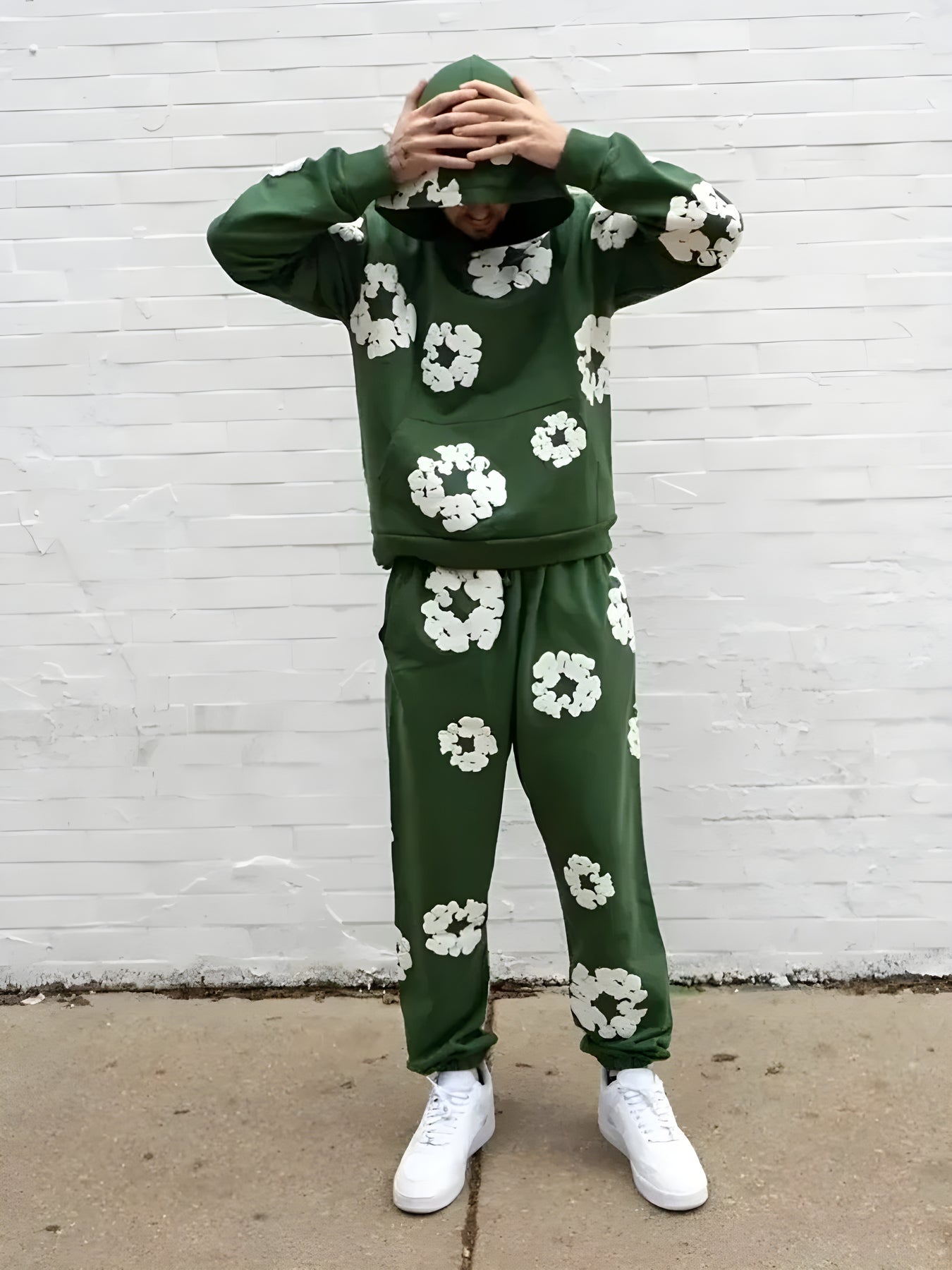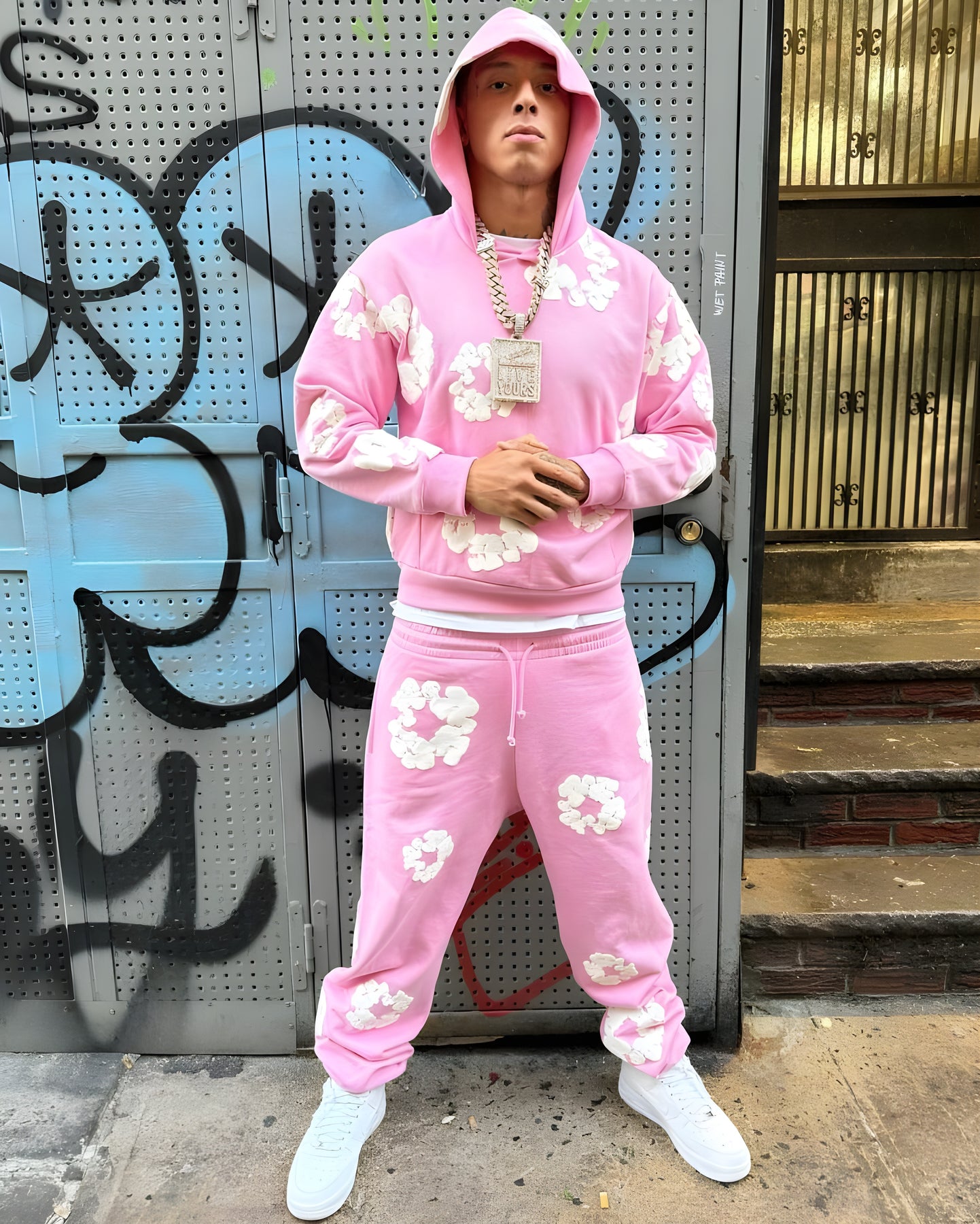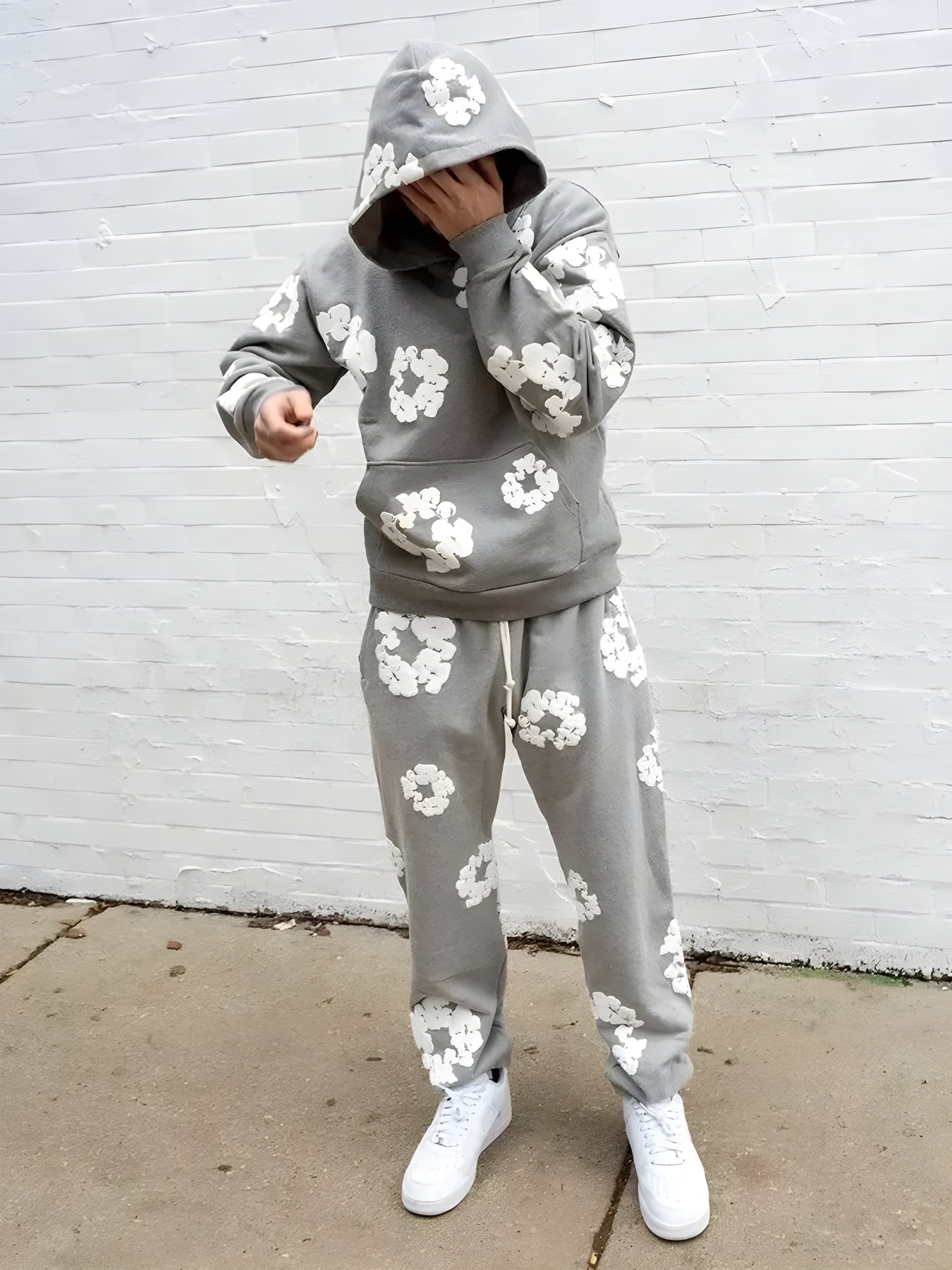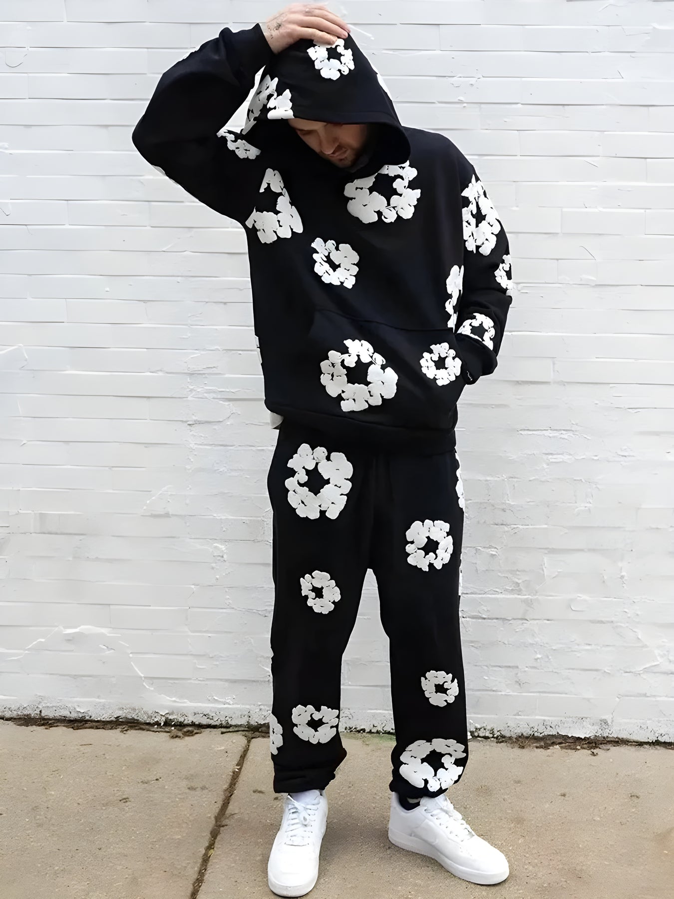 Koe äärimmäinen mukavuus ja täydellinen loose fit Jodi | Kukkakyyneleet Takkisetissä. Hienovaraiset valkoiset kukat antavat ilmeellesi trendikkään vivahteen, täydellinen muotitietoisille miehille ja naisille.